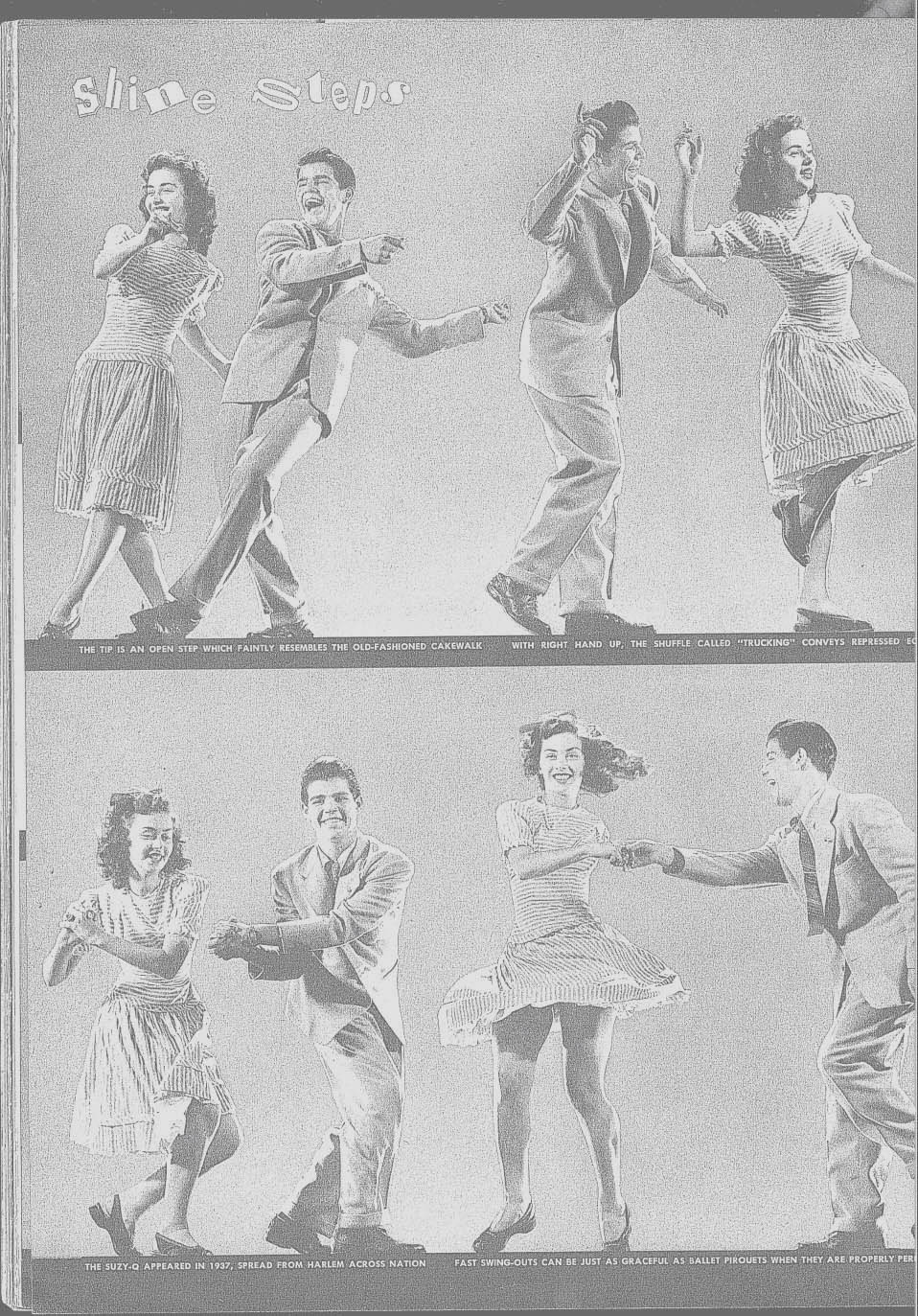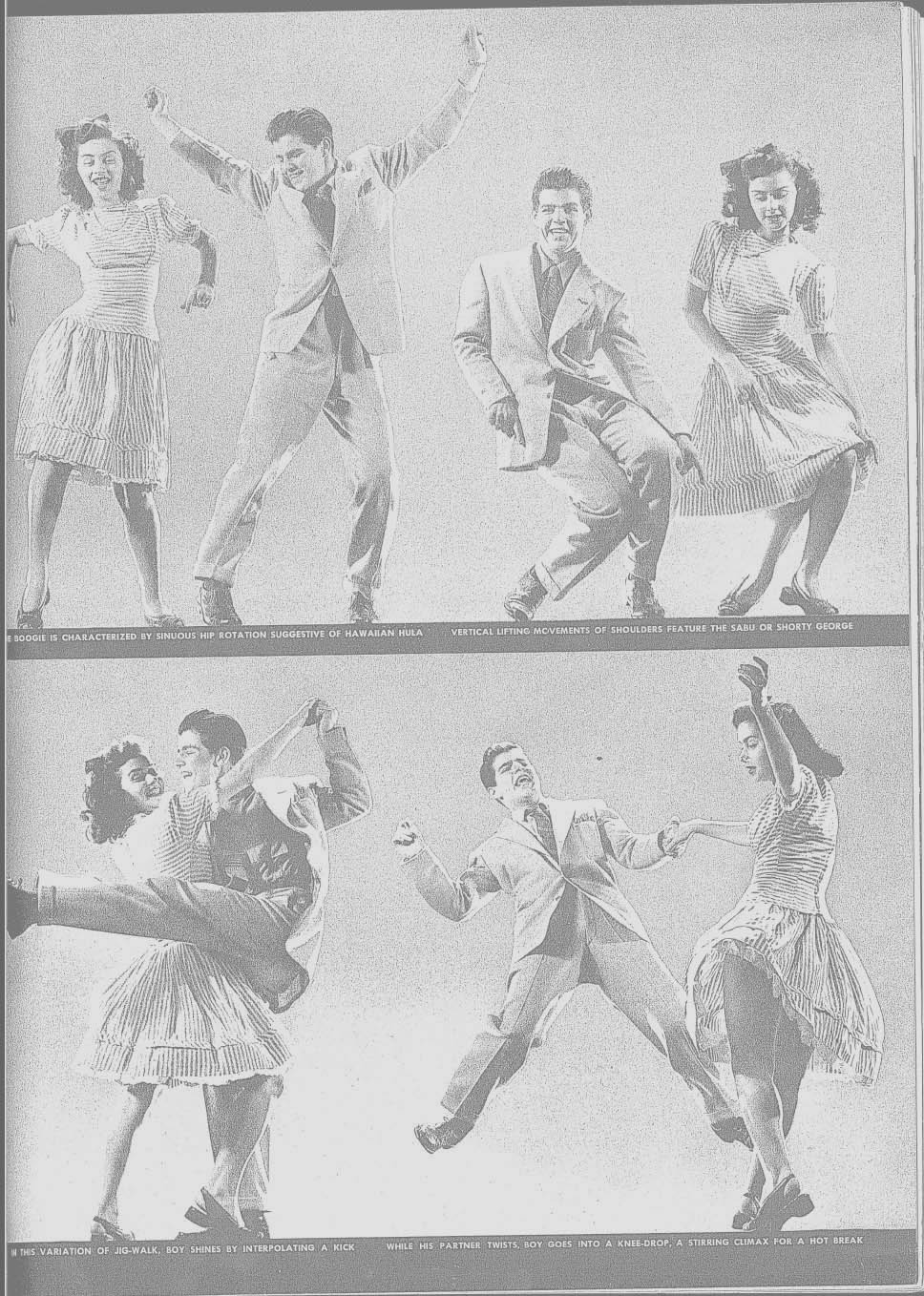 We have found most of our copies at estate sales after lots of laborious digging. At Savage Mills (see the Travel Guide), there is a store that has LIFE magazines on display carefully sorted by year. Expect to pay between $25 and $35 for specific copies. As the swing movement gains intensity, prices can only go up. Here, for your viewing pleasure, is the famous August 23,1943 article on Lindy Hop. You can enlarge any of the small pictures to full size (11 x 14) by clicking on them. Also, just in case you can't read the fine print, you can also also download the article as a ".pdf" and enlarge it to your heart's content.