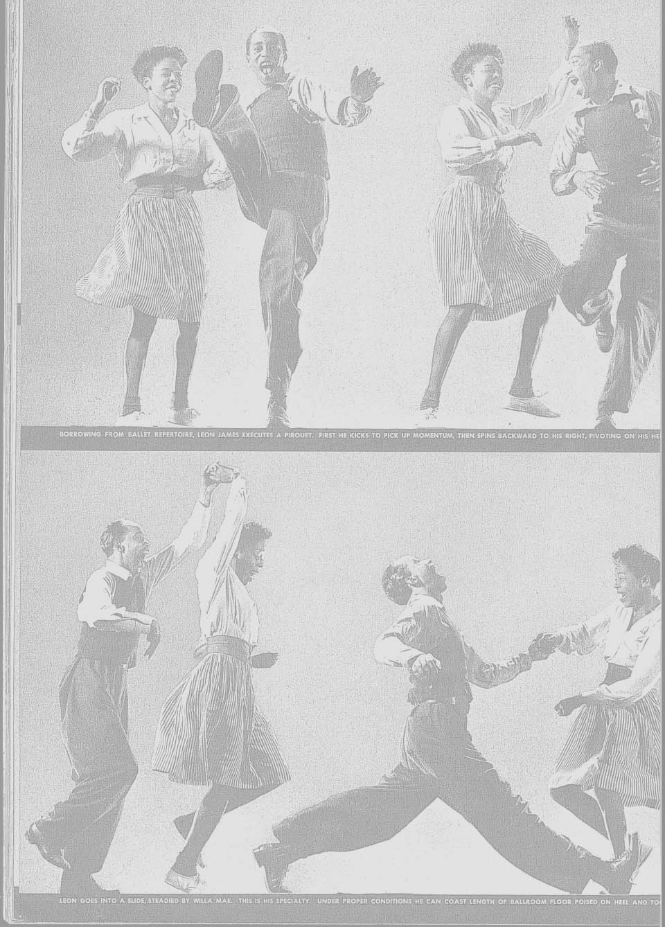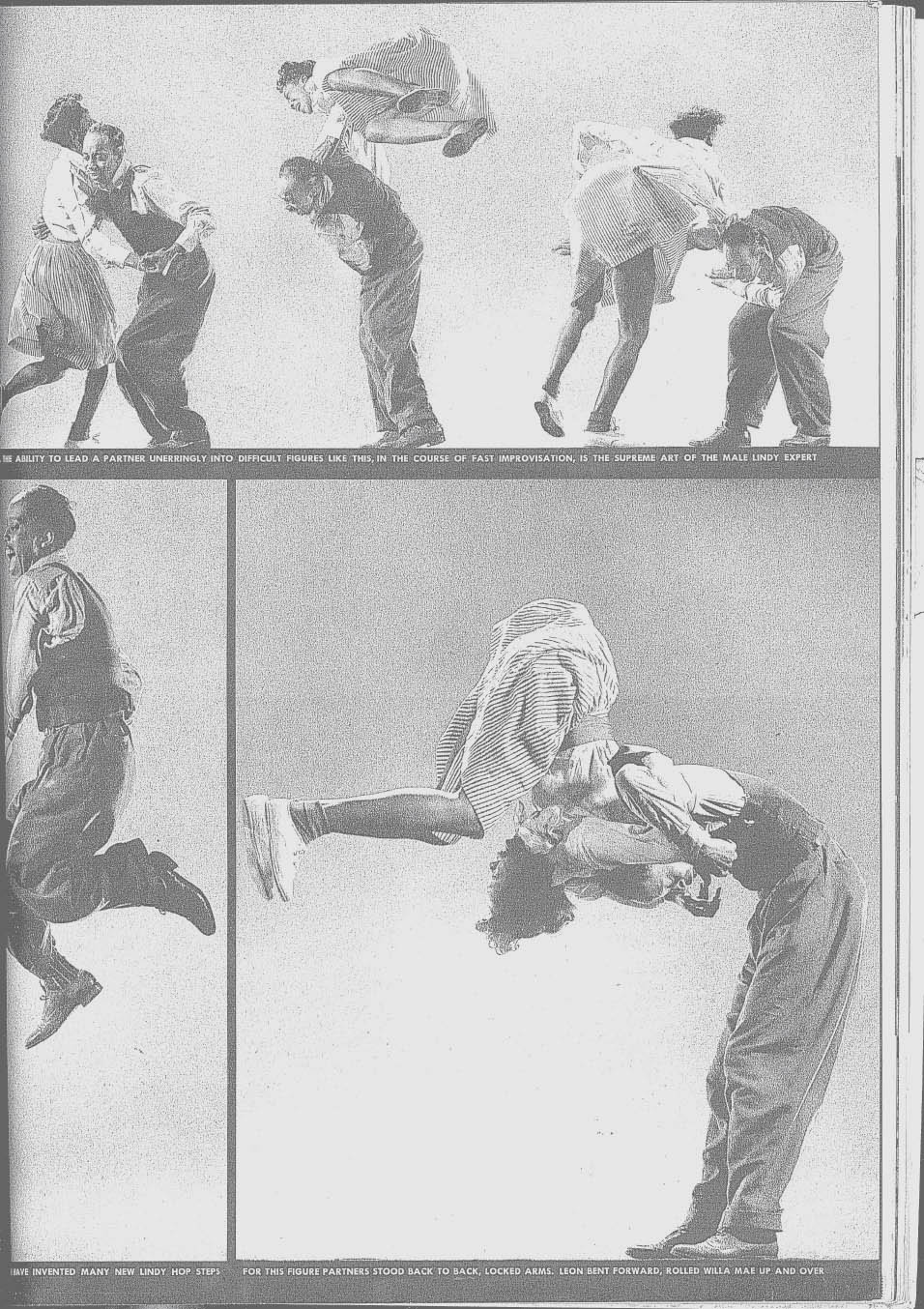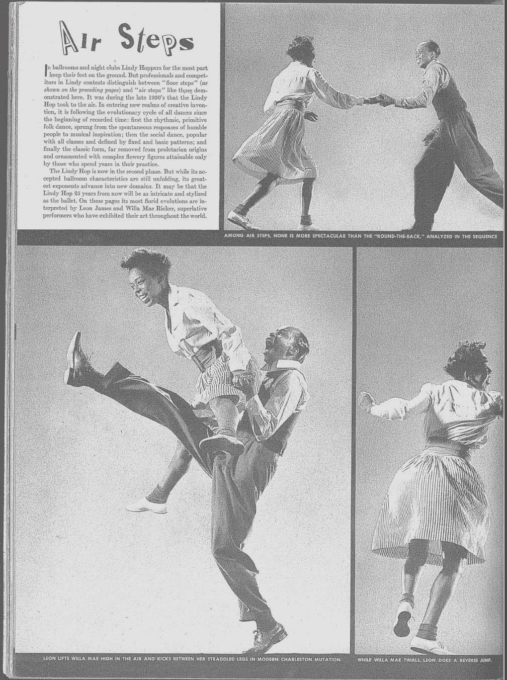 Suzi Nonn tells us that "when Erin Stevens and Steven Mitchell started to get into Lindy in the early 1980s, they came across an issue of LIFE magazine that featured classic pictures of Leon James. They were so inspired by the photos that they set off for New York to track down Leon. They also found a postal worker who didn't dance any more but who reluctantly agreed to meet them. That meeting brought Frankie Manning out of retirement" [Steppin' Out magazine, March/April, 1996] We have been collecting back issues of LIFE magazine for about ten years and we love them as a sourcebook for period clothes and products from the 1930s and 1940s. Beware, though, LIFE was inordinately conservative, Anglophilic, anti-immigrant, and [to us] downright racist in its approach. It seems that prior to World War II, when Lindy was largely within the Black community, LIFE looked down on the dance with amused condescension. In the December 28, 1936 issue on American dance forms, Leon and Willa Mae are only identified as "These Harlem Negroes..." while other (Caucasian) dancers are identified by name. Often, the pictures were a thinly veiled excuse to inject some "cheesecake" into the magazine. LIFE revelled in using the term "Jitterbug" [a term for an alcoholic] to deride Lindy Hoppers. It was only in 1943 that LIFE discovered Lindy as "America's Folk Dance" after it had been adopted by the white community, particularly the GI's who were off fighting the war. Candidly, Henry Luce, the publisher may have had a distasteful editorial policy, but he did hire some great photographers such as Margaret Bourke-White, Philippe Halsman, Alfred Eisenstaedt, and W. Eugene Smith. As a photographic record, we have nothing but praise for LIFE. There are thirteen issues which are especially relevant to Lindy Hop: