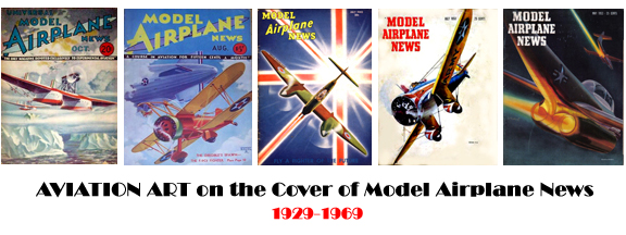 Aviation Frontiers, 1929-1969![]() Why are we doing this? When I was a kid, one of the big events of the month was the arrival of my copy of Model Airplane News. This was in the 1950s when things like Radio Control, model jet engines, and fiberglass were evolving. There were pictures of incredibly detailed scale models as well as the skeleton-like indoor models covered with microfilm and every other permutation on less-than-full-size flight. I was amazed at the grown men who had workshops full of sophisticated tools as well as the money to buy engines and equipment that I could only dream of. With a lot of help from a sympathetic science teacher, I even got through some of the technical details of airfoils and RF modulation. And, of course, I made model airplanes. (Look at this page for more on that subject.) My fondest memory, however was the stunning cover art done by Jo Kotula -- he was able to capture every kid's fantasies about airplanes, particularly when he showed an American fighter diving from the clouds with machine guns blasting away. I kept a lot of my copies of Model Airplane News (or M.A.N. as it is known to enthusiasts...) and I buy copies whenever they show up at flea markets. I have 285 copies stored in archival boxes. In addition to this, I live in Washington, DC with easy access to the collections of the Library of Congress and the Smithsonian Air and Space Museum. I was discussing M.A.N. with friends and was saddened to find that they had never heard of Jo Kotula even though he over 300 covers for M.A.N (and others for Popular Science and a host of miscellaneous publications). I searched the internet and was saddened to find that there was no website that paid tribute to Jo Kotula. (Although there were commercial galleries that sold his work for large dollars with little biography.) So, I decided to make one. What about the folks who sell this stuff? The online auctions often feature M.A.N. covers. The problem is that there is no ofiicial or unofficial index to the magazine. The sole purpose of this webpage is to answer the question "What was on the cover of Model Airplane News?" (...and to put the cover into historical context) All cover reproductions are reproduced in 72 dpi format, so they are not ruining the market for fine art. For some of the rarer covers, I even blurred the image. The intent is to build a market for these materials rather than destroy one. You should know that I don't sell anything -- and my intent is only to fill a historical vacuum. I have covered the first 40 years of M.A.N. from 1929 - 1969. Others can fill in the last 40 years. This material is for historical interest only -- the plans that have been reproduced are intentionally distorted -- you can look at them, get an idea about what you want and then order them from the Academy of Model Aeronautics, the current publishers of Model Airplane News or from the Cleveland Model and Supply Company. I am not connected with any of these organizations. History of the Covers Model Airplane News had eight different cover styles during the first forty years of publication. They began as "Boys Flying Adventures Model Airplane News" with the words superimposed above a propellor. The cover subject was a boy enjoying contact with aviation. This general theme held unti January of 1931, the cover style changed -- the propellor went away and the title became "Model Airplane News and Junior Mechanix". The cover subject was a rather fanciful drawing of a "hangar" on a dirigible. By May, 1931 the title stayed the same, but the format moved to a cover painting with a scene from "Wartime". These covers were drawn by R.C. Wardel, a commercial illustrator who did pulp magazine covers. Jo (then Josef) Kotula makes his debut in May, 1932 and stayed for more than 40 years.