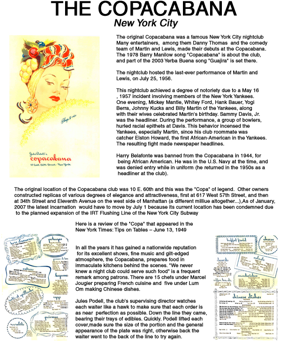 ![]() Here are some artifacts from the "Copa". ![]() Matchbook and Ash Tray from the Copacabana Click to Enlarge INSTRUCTIONS | |