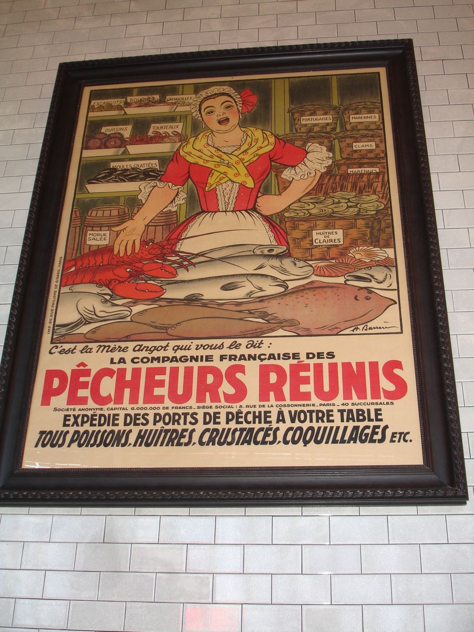 A group of us were dining at Can-Can, our favorite brasserie in Richmond, we noticed a marvelous poster, shown below. This is an advertisement for the United Fishermen, a French marketing cooperative formed in 1925. ![]() Authentic Decorations At Can-Can Compagnie Française des Pêcheurs Réunis (Click to Enlarge) The poster reads: "Mother Angot Sez: (lit. gives you the word that) The United Fishermen can get the catch from the port right to your table, including all fish, oysters, lobsters, scallops and the like." Sure enough, in addition to those named creatures, Mother Angot is showing off an impressive display of saltwater delicacies, including Sea Urchins (Oursins), Frogs (Grenouilles) and turtles (torteaux). For your information, the Compagnie Française des Pêcheurs Réunis (CFPR) was founded in 1925 and was a limited liability corporation (Société Anonyme). This was the flag that was flown from CFPR vessels: ![]() Compagnie Française des Pêcheurs Réunis The French United Fishermen Company The poster is very nice, but why is there a web page about it? In our American history, you'll find that companies used historical figures to sell almost anything: George Washington coffee, Lincoln Federal Bank, U.S. Grant Cigars, and the like. Well, Mother Angot is a bona-fide historical character, ranking up there with John Bull, Uncle Sam, the Russian Bear and other symbols of National Identity. ![]() Washington's Name, Image and Signature used to sell coffee (click to enlarge)