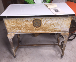 Thor Gladiron Ironer Advertisements from the 1920s Click to Enlarge Eventually, the Hurley Company made a lightweight collapsable machine as shown in these photos sent to us by our friend Gayle in Frankfort, Kentucky. This machine was targeted at folks suffering from the postwar housing crunch where new couples were often squeezed into very small spaces. On this machine, the shoe moves onto the roller, so it is more like the Conlon than the Iron-Rite. This is what the Gladiron looked like when it came out of the box! ![]() Kudos to Gayle in Frankfort