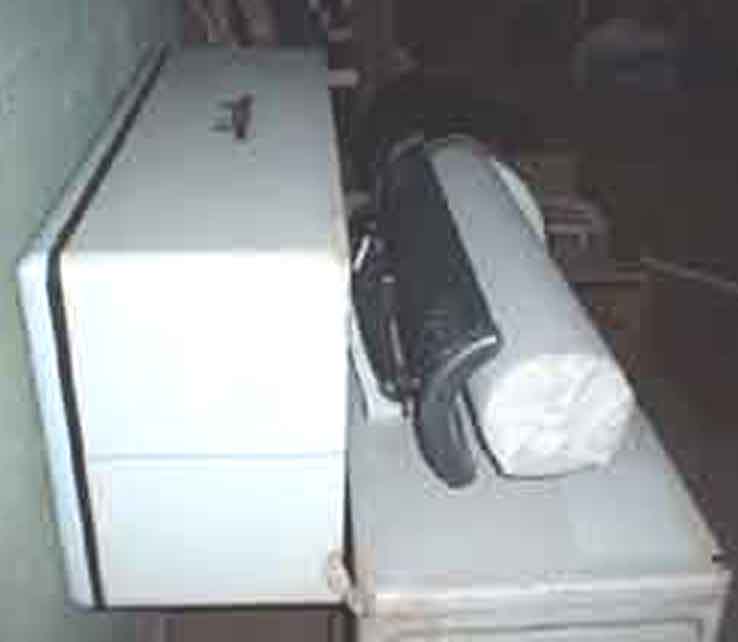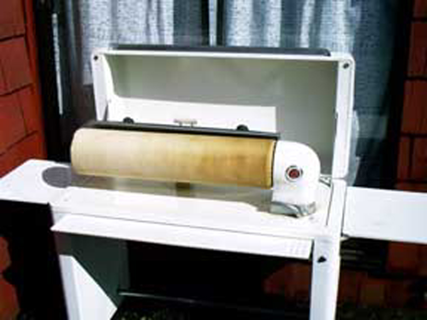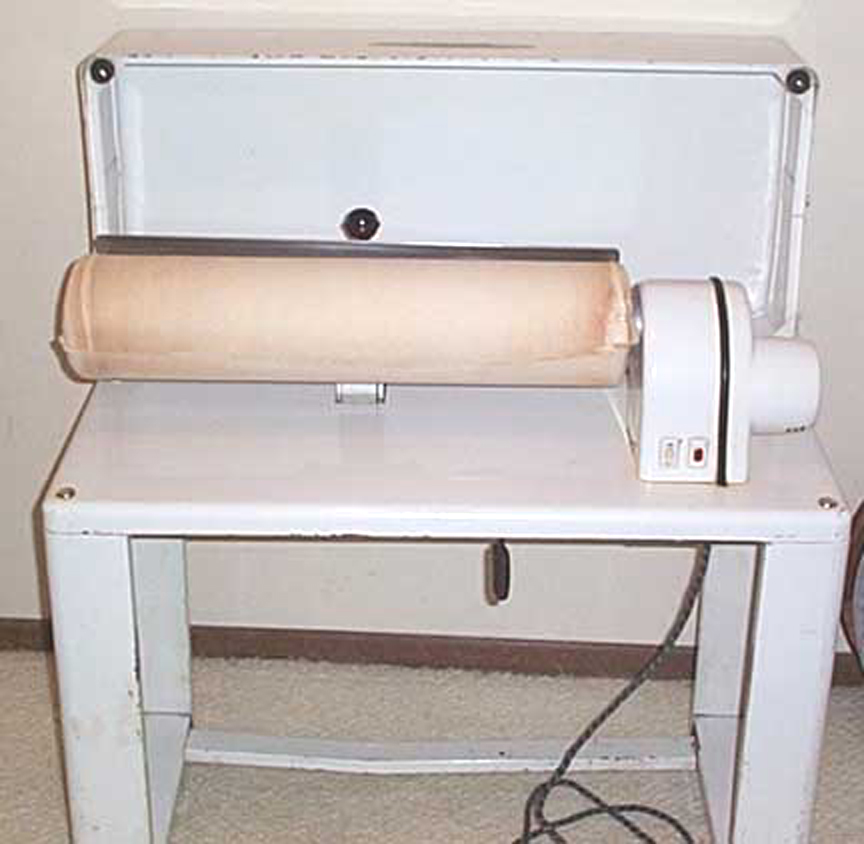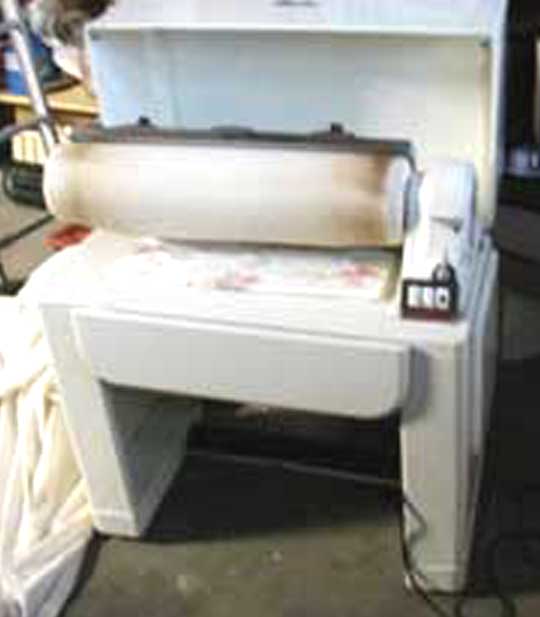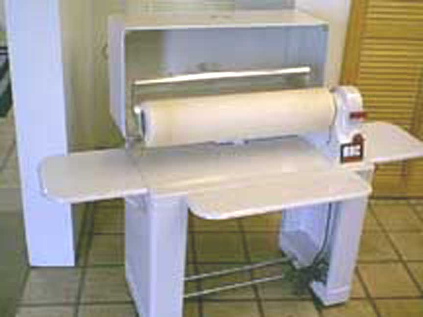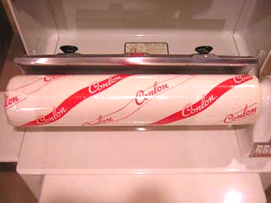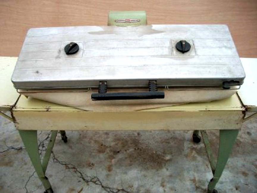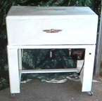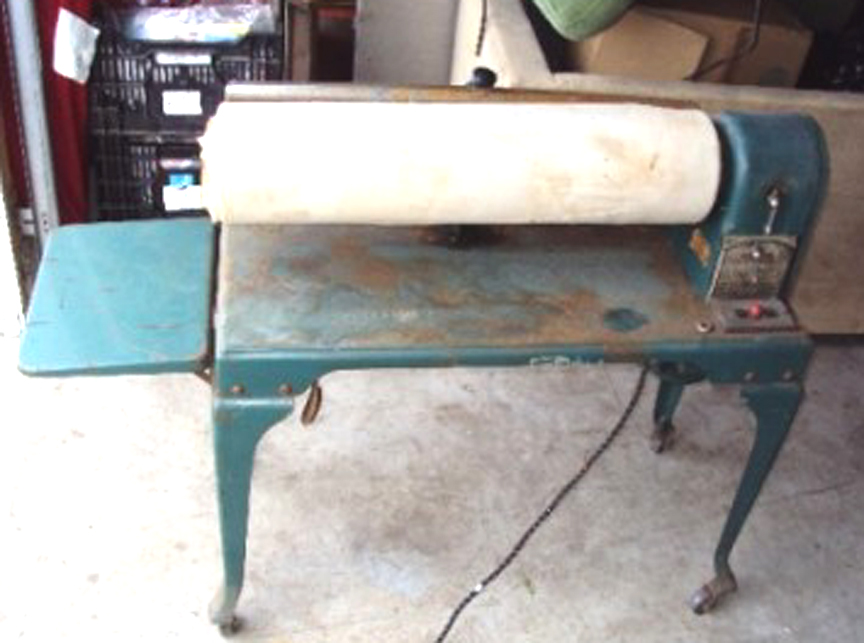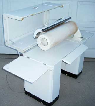 Conlon Ironer in Ironing Position Click to Enlarge Here are some more Conlon pictures sent in to us by our friend Bob in Oxnard, California. He writes: "... What a surprise to find your web site. I was searching for a Conlon Ironer corporation web site to obtain if possible a Conlon Ironer Manual. I did not find it but I found your web site and imagine my surprise when you had a photo of exactly my Conlon Ironer. I am attaching a photo of my Conlon Ironer. For what it's worth. My wife died about 2 years ago and last week I pulled our old Conlon Ironer out of storage in my garage. I cleaned it up and plugged it in and to my amazement it worked. We bought our Conlon Ironer in the late 1950's in Topeka, Kansas. My wife really loved it and would never think of getting rid of it even though she had not used it in years. As you indicated, everything was ironed back then. My wife, Betty, always ironed a white shirt each day for me to go to work. (I was an engineer in an office.) She was the greatest of wives. We were married for just over 50 years. Now I think that I will use it to iron some of my good trousers and a sheet and pillowcase or two just for old times sake. I live in Oxnard, California and would like to locate a manual for the Conlon Ironer since I cannot find ours even if it is still around someplace. If you know anyone who has one or an idea where I can get one, please let me know. I loved your web site. The music of the '40's and '50's were the best ever and has never been equaled. Long live 'Your Hit Parade'..." Bob's Conlon Ironer Click to Enlarge We got a note from a reader who actually found a Brand New Conlon Ironer -- it had been given to a relative as a present and was never used!