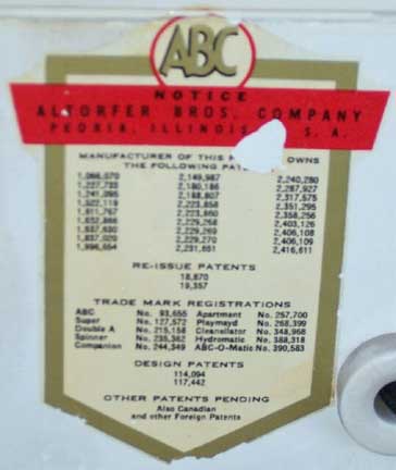 Conlon Ironer from 1933-1935 Click to Enlarge The ABC Ironer The Altorfer Brothers Company (ABC) of Peoria, Illinois made a large number of laundry products -- including washers, dryers and ironers. They seem to have made products of reasonable quality, but they never attained anything larger than a small market share in the Midwest. Their ironer has a lot in common with the Conlon. The Ironrite is the only machine in which the roll moves and the iron is fixed.