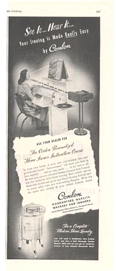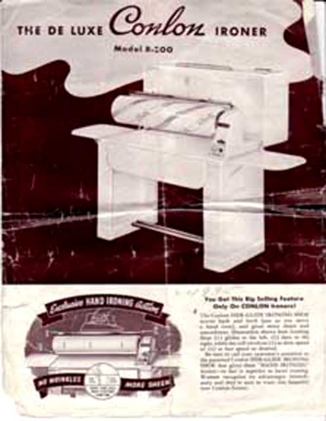 Conlon Ironer Advertisements Click to Enlarge I know very little of this company and I am thrilled that one of our readers sent these photos to us. If any of our other viewers know more about this company, please Contact Me.