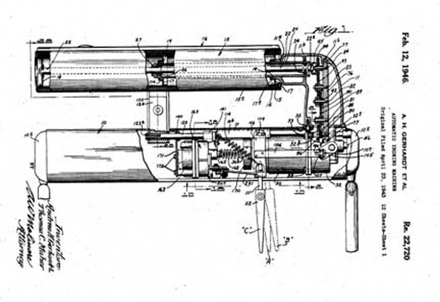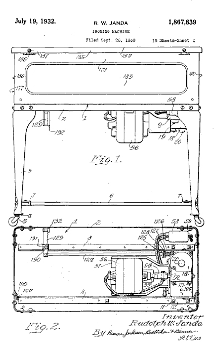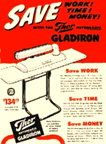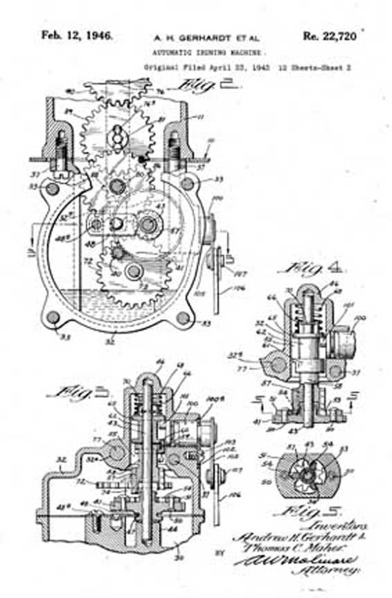 Mid 1940s Ads for Thor Gladiron Ironer Let Your Children Do the Ironing Click to Enlarge The Gladiron appears to have been the creation of Arthur H. Gerhardt, Arthur P. Schulz, and Hugh M. Rumbaugh, dating back to 1940. Mr. Gerhardt seems to have done the principal design work, particularly the exterior while Messrs. Schulz and Rumbaugh were involved with the mechanicals. The principal patents for the Gladiron are:
