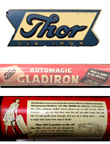 Thor Gladiron Ironer Washer-Ironer Combination Click to Enlarge Several variations of the "Gladiron" were introduced. One model would serve as an actual attachment to the washing machine. Simply take off the wringer and attach the gladiron and the lady of the house or her domestic servant could do their ironing above the machine. The other model was a stand-alone version. Both the washing machine and gladiron were big hits in households throughout the country and the world. The Arcade Toy Company made tiny replicas of both machines for little girl doll houses.