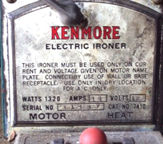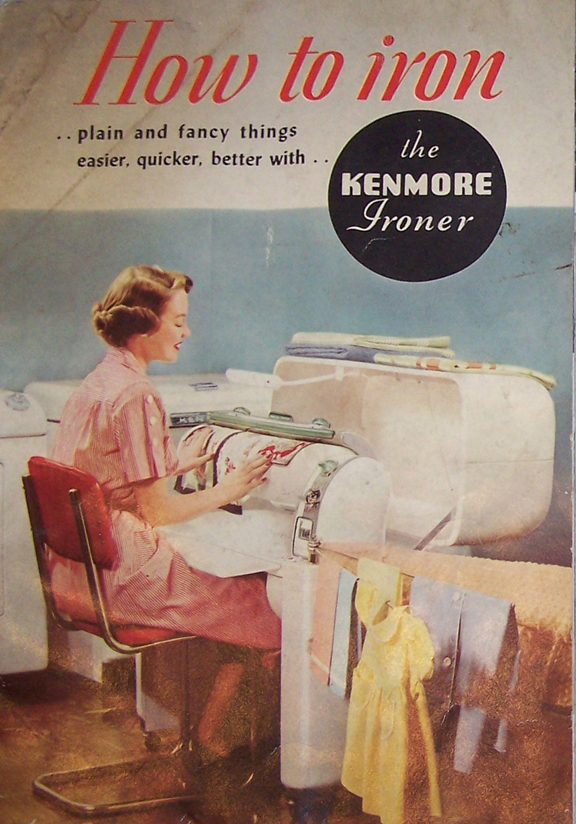Kenmore Ironer (c. 1930) Click to Enlarge Sears continued to sell Kenmore Ironers well into the 1950s. We were privileged to get this note from Pam, one of our readers: "... I have a 1952 Kenmore Ironer with the manuals. My Grandfather bought it for my Grandmother in the 1950s. She used it to iron his suits because he was a door to door insurance salesman..." Here are Pam's photos: