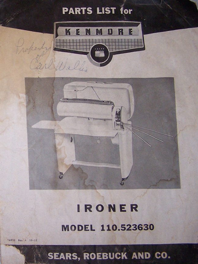 Kenmore Ironer (c. 1952) Click to Enlarge Pam also has promised to scan the manual and the parts list. Check back with the site to see when I have received them.