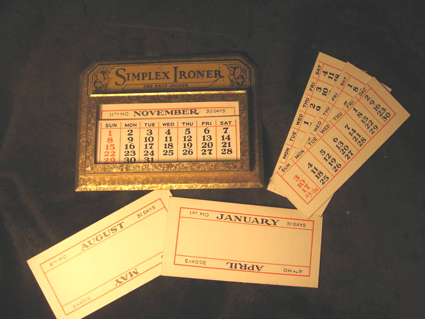 Simplex Ads targeted at "Pride of Posession" Click to Enlarge As the 1920s progressed, "Status" or "Pride of Possession" also entered the advertisng copy. Thanks to our friend and reader Don H. of Palm Desert, California, we have a complete Simpex operator's manual for this very early model. Write Us and we'll be glad to send you a ".pdf" of the manual for FREE. Simplex Promotional Calendar This was a Big Purchase worthy of lots of marketing schtick Click to Enlarge Here are photos of a "Modern" Simplex. They were sent by our friend Sharon from West Virginia! ![]()