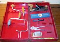 (left)The Exterior, as found (middle) the Box Latch (right) Next level higher set from the 1920s (not mine)