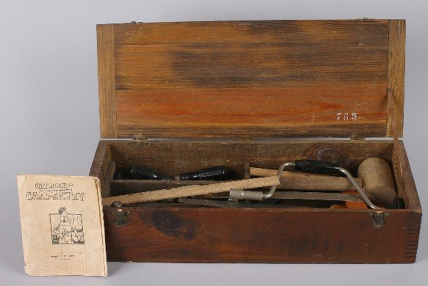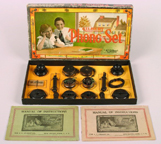 Apparently, the Boy was supposed to supply the wooden parts. The toy was heavy and came in a thin wooden box that breaks easily. As a result, there are very, very few mint condition "New Wheel Toy" sets. This is an expensive and hard-to-find item, suitable only for the most avid collector. If you have one, insure it.