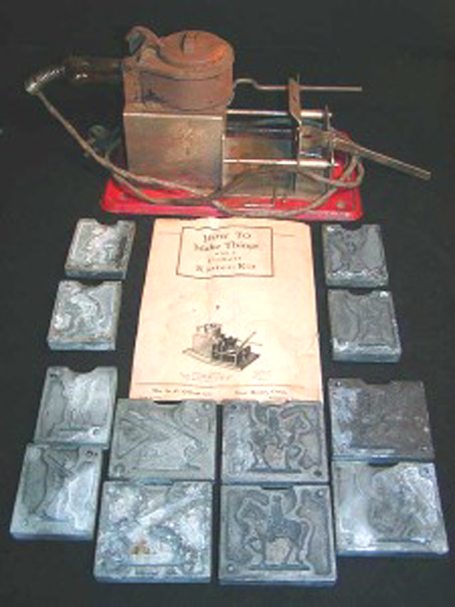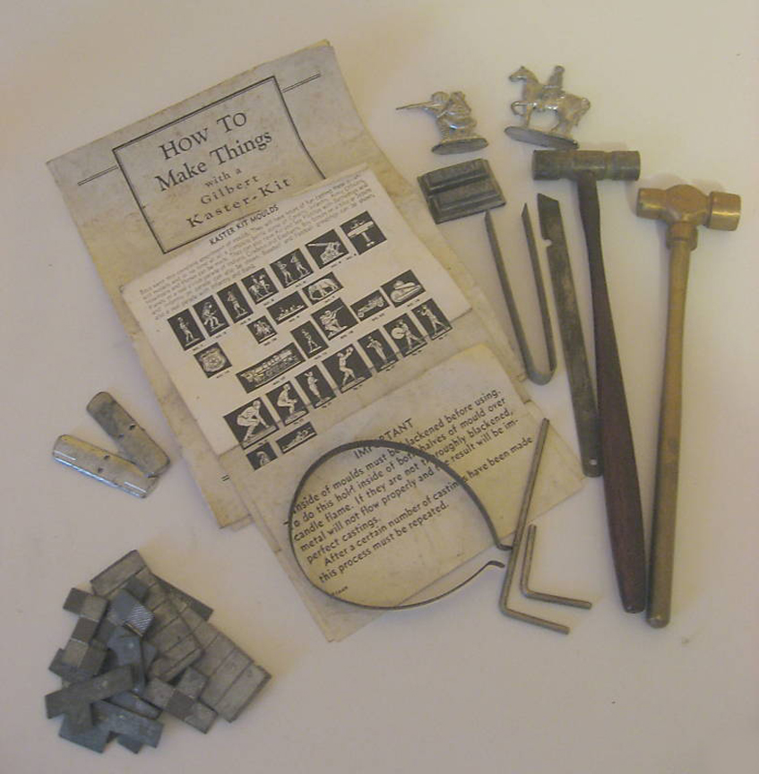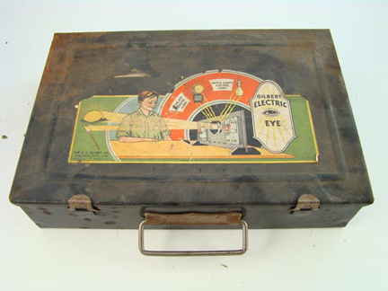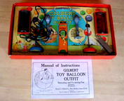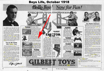 This is a very unusual toy from the 1920s. It is one of the very few Gilbert toys that does not use proper spelling. In addition, the typography on the box suggests a kid who is having trouble forming letters. At that time one of the techniques for showing that something was for (or done by kids) was to use phonetic spelling and mal-formed letters (such as a mirror-image letter "N") - it is, however, unusual that Gilbert would use such a device because he always wrote for an audience of Boys who could read, write and spell. (as we have seen above, some of the manuals are written at college level.)