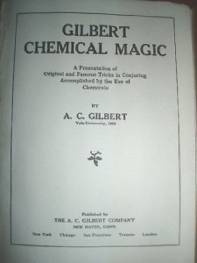 Mr. Gilbert always mixed a little entertainment in with his science. Here is another little booklet from the 1950s on tricks that can be performed with Chemistry -- it's largely the same material that is in Chemical Magic