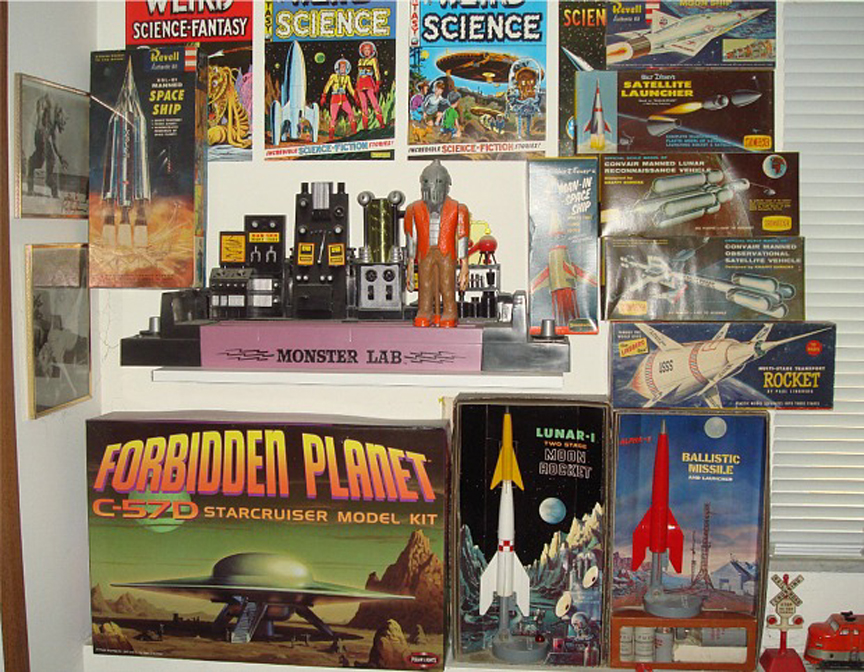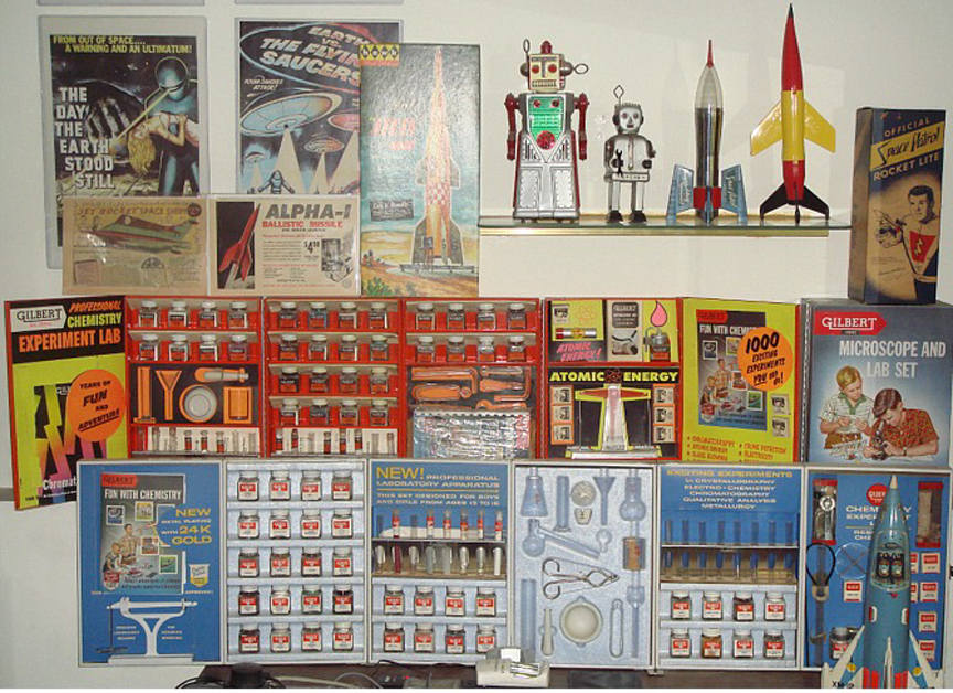 "... [The Boy could] turn out to be a mad scientist! See what playing with these toys could result in? Of course every mad scientist should have a monster lab...[as shown in the photos below]...and, of course, a sufficient quantity of ray guns for defending against any aliens..... ..."