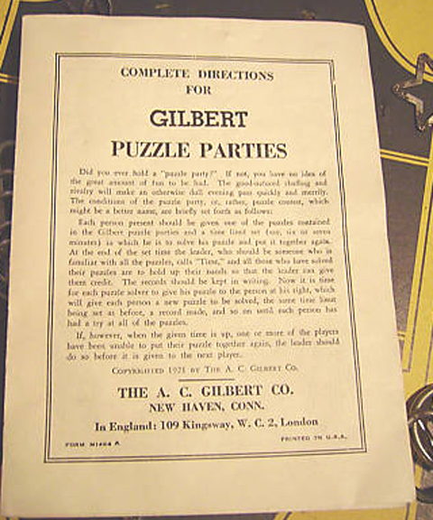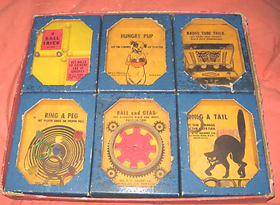 At the end of the Gilbert Company's life, the hand puzzles remained, but it looks like a large committee of Concerned Moms go told of them. However, the "Atom Bomb" puzzle managed to sneak through amongst the remaining insipid items.