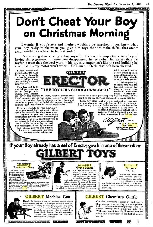 The Gilbert Sets are thoroughly made and are for sale by all dealers. Write for the Gilbert Catalog which illustrates and describes fully these and many other Gilbert Toys. Prices subject to change without notice.