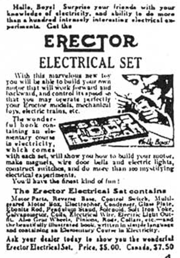 It looks like the Gilbert company put together a few wires, sockets and light bulbs to convince Boys that they could light up their Erector models.