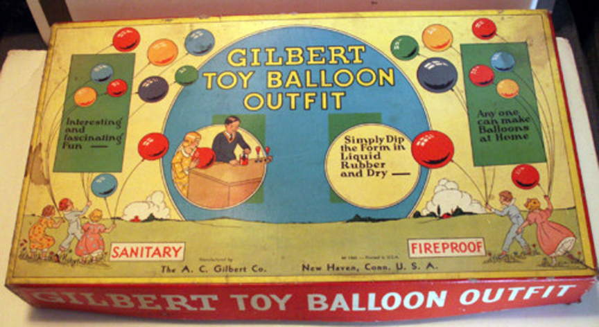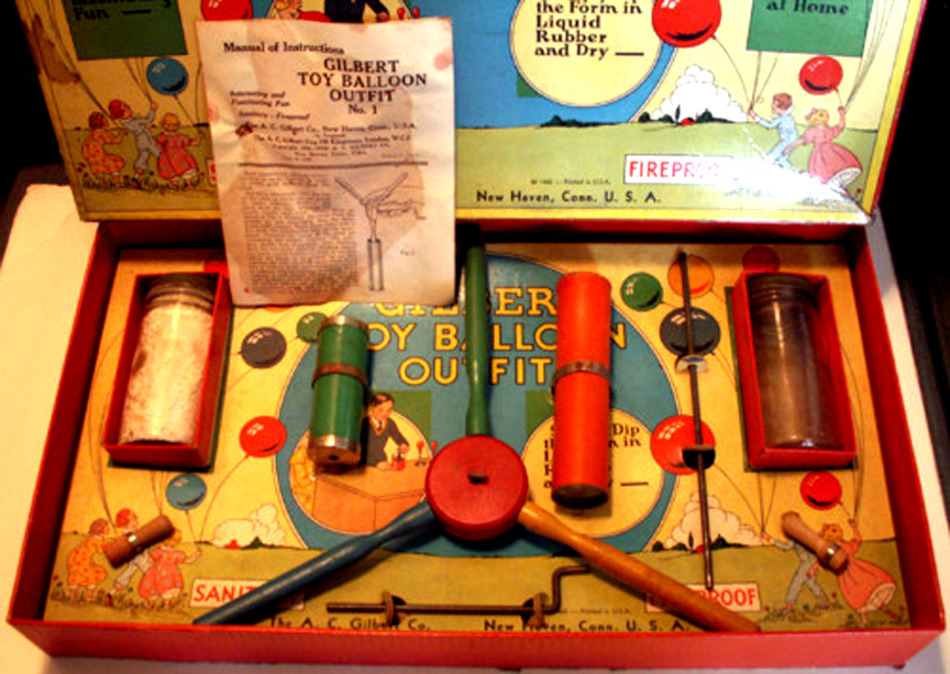 This is a very rare kit that enabled the Boy (and his Sister, if the pictures are right) to "Make Balloons from Liquid Rubber."