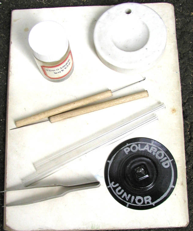 Below is a photo of Dewey's own set and a copy of the patent drawing for the process that underlies the kit.