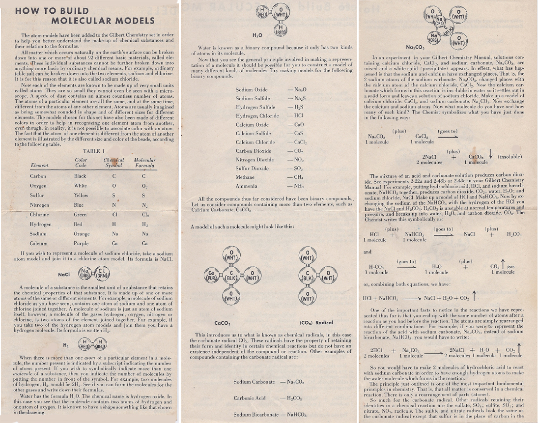 Click here to download the "legacy chemicals" brochure. It has a list of the 56 original (1936) Gilbert chemicals and their contemporary (2010) equivalent names.