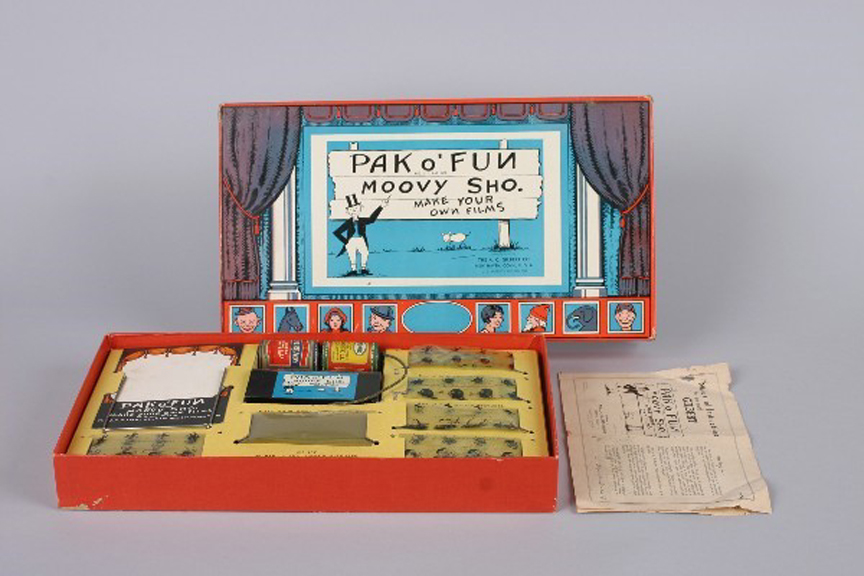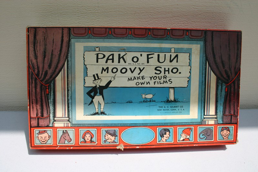 This toy is often compared with the Kenner Give a Show toy (above). This would be inaccurate, because the Gilbert Toy explores true animation while the Kenner toy is just a slide projector.