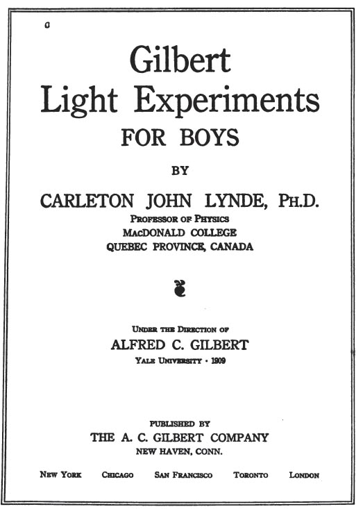 This page presents a brief summary of the marvelous Science and Magic kits sold by the Gilbert Company. In case you think that some of these things look "hokey" remember that there was no television or video games at the time they were sold.