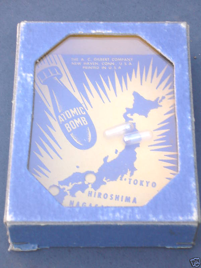 Our favorite is the "Atom Bomb Puzzle" in which the Boy was supposed to cause a capsule-like token to fit into holes corresponding to Hiroshima and Nagasaki in a map of Japan. No political correctness in 1945..