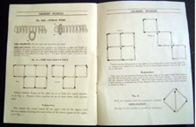 Mr. Gilbert never lost his interest in entertainment. The Boy had to have fun as well as learn something. These puzzles were an exercise in manual dexterity -- and (unitendedly) prepared the Boy for the various occupational tests that were administered by Industry. Several of these puzzles actually appeared on the Army General Classification Test used to screen recruits.