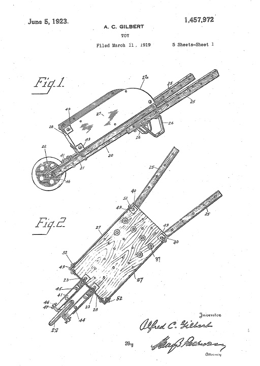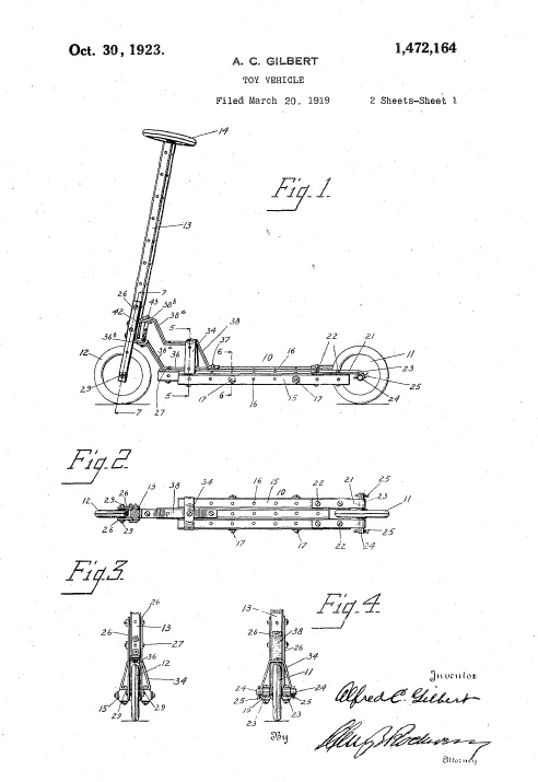 I don't know how, but Mr. Gilbert managed to get patents for things like a scooter, a wheelbarrow and a wagon. It has to do with the nature of the connectors and parts rather than the overall design, but it does seem odd.