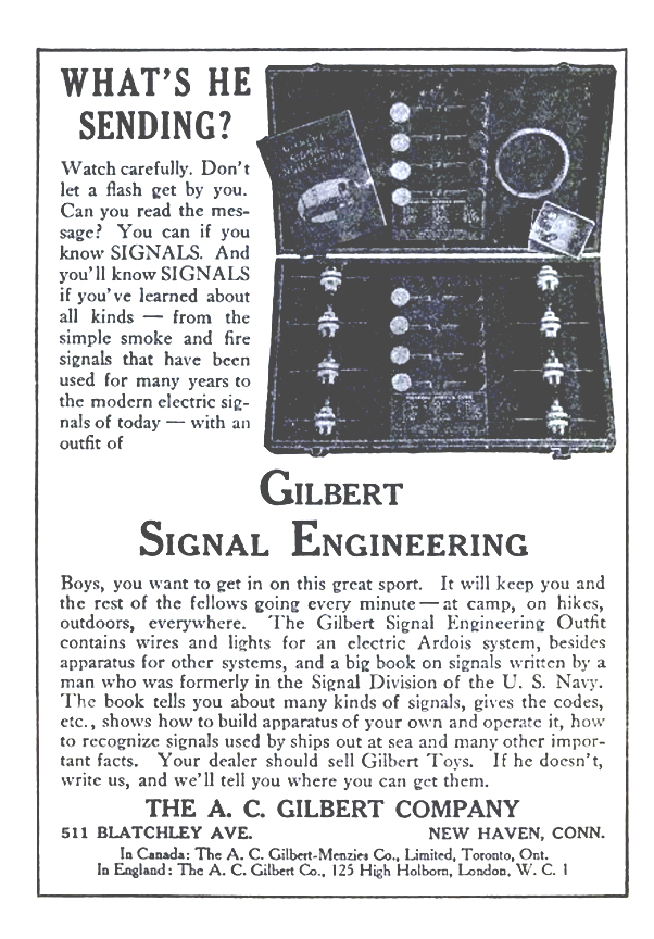 GILBERT TELE-SET-A complete working telegraph outfit and manual of instructions. Price $2.50. In Canada $3.75.