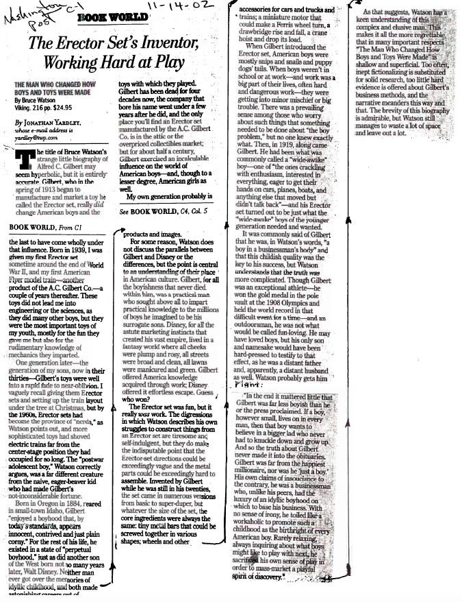Just in case you are curious about how Mr. Gilbert was able to patent these mundane toys, we are making the complete patent description available to you at no cost.