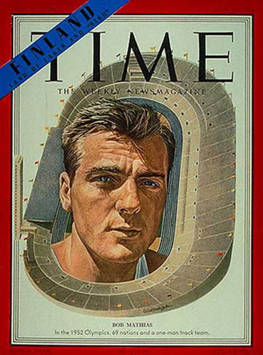 Antique Crosse (Bent Ash and Leather) (click to enlarge) Lacrosse is played using a solid rubber ball and long handled racket called a crosse (aka lacrosse stick.) The head of the crosse has a loose net strung into it that allows the player to hold the lacrosse ball. Offensively the object of the game is to use the lacrosse stick to catch, carry, and pass the ball in an effort to score by ultimately hurling the ball into an opponent's goal. Defensively the object is to keep the opposing team from scoring and to dispossess them of the ball through the use of stick checking and body contact. If you want to learn more, check out the website of the International Lacrosse Federation DecathlonWhen I was in High School, I was really skinny. I had some success at track and field events. I was pretty good at distance running and (somewhat unusually) also the sprints, particularly the hurdles. Our high school was quite small, and the coach had me run the second lap of the 4x100 Relay. In competition against lesser teams, I ran the 100 yard dash, saving our best for the 220 and 440. I even won a few of those races. Most sprinters also practice the jumps and I had attained fair performance in the Long and High jumps. I was always fascinated by the Pole Vault and spent a summer working out with one of the guys who was pretty good at it. The new tubular metal poles had just become legal, and they began to favor smaller guys. When I showed off my new skill to the coach, he got the idea that I might do well in the Decathlon. For those of you who are not familiar with this event, here is some background: The decathlon is an athletic event consisting of ten track and field events. Events are held over two consecutive days and the winners are determined by the combined performance in all. Performance is judged on a points system in each event, not by the position achieved. The word decathlon is of Greek origin (from deka [ten] and athlos [contest]). The decathlon is contested by male athletes, while female athletes contest the heptathlon (seven events). Here are the Men's events: Day 1 Day 2100 meters 110 meter hurdles Long Jump Discus Shot Put Pole Vault High Jump Javelin 400 meters 1500 meters My first reaction was that it was silly because I really couldn't do the weight events. Coach explained the complicated scoring formula that would balance mediocre performance in the weights against good performance in the running events, since the big musclebound guys who could excel at shot-put couldn't do diddly at 1500 meters. The Pole Vault and the Jumps would be the separators. The fact that the cross-country team (of which I was a member) had won the State Championship didn't hurt... The 1960 WPIAL/PIAA Cross-Country Champions (click to enlarge) So, I spent the winter training to get up to speed on the Javelin and Discus, events where I might have some chance of competing with the big guys. (I didn't even try to do the shot put.) .With Bob Mathias as my new ideal, I gave the decathlon my best effort in my senior year. I won some meets against smaller schools and even got fourth place at the regionals. After that, I gave up the decathlon, mainly because it took too much time. But, I hung on to my javelin and discus the whole time, mainly because they were so expensive. Pictures of them are shown below.