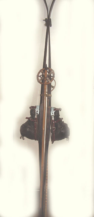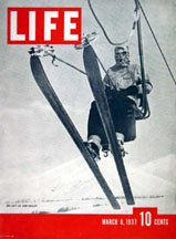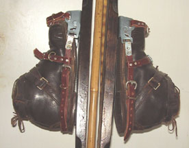Restored Nordic (Cross-Country) Skis Ken-Wel Decal Bindings (before) Gerber Ski Boots and Restored Bindings The Skis -- ready for the car top These bindings are totally deadly! A broken leg or ankle is almost guaranteed (click to enlarge) After my pleasant experience with the Nordic Skis, I decided to try my hand at a pair of downhill skis that had materialized in the Episcopal Thrift Shop down the way. Midway through the restoration, I was informed that the exact same skis were featured on the cover of the March 17, 1937 issue of LIFE Magazine -- and so they were.
