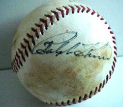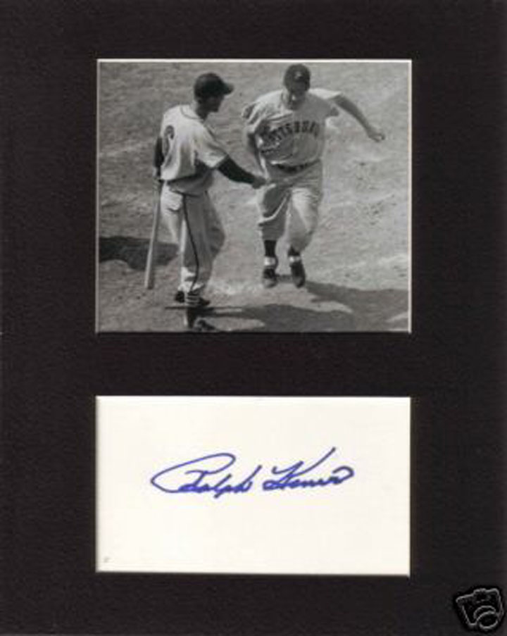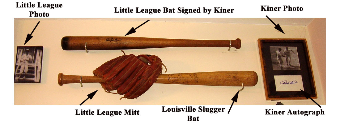 Little LeagueLike most red-blooded boys of the 1950s, I participated in Little League. I played for the Brown and Vaughn Tigers for one season. Messrs. Brown and Vaughn were suburban developers in the early 1950s in and around Pittsburgh. Here is a photo of me in my ill-fitting uniform: The Brown & Vaughn Tiger (click to enlarge) I like baseball, both as a player and a spectator. When we lived in the City, I played nearly every day on the "playground" that was available to poor kids. It was a large vacant lot next to St. John's Church that had been soaked in oil (yes, road oil...) to keep it from blowing away. We enjoyed our games there and came home filthy. Since all the older men had to work, we got used to a form of self-governance. The biggest kids made the rules. If you didn't like it, you could get a black eye. Since big kids were fairly evenly distributed among the various teams, a sort of mutually assured destruction kept the games almost fair. When we moved to the Suburbs, it was somewhat different. The fields were lush grass, and we had the trappings of real baseball such as dugouts, scoreboards and a real umpire. Unfortunately, many fathers found the time to attend the games and shamelessly promote their own sons. I had my share of successes and failures, most of which provoked someone else's father to scream at me, most of the time with a bright red face. If I hit a home run, I spoiled some kid's ERA. If I dropped a fly ball, I made someone elses's son look bad. I didn't mind taking gaff from bigh tough kids. It was another thing to be harassed by adults. After retaliating a few times by sticking nails in tires, I decided that I didn't want to play for Brown and Vaughn anymore. If I had a free day, I'd ride my bike to the streetcar and go back to my old neighborhood to play on the oiled dirt. At that time, the Pirates played day games, so it was also possible to take the streetcar to Forbes Field and sit in the "nosebleed" section of the outfield bleachers for a quarter. At that time, families could bring large hampers of food into the ballpark (concession revenue was not the principal source of the team's income...) With clockwork regularity, an Italian or Polish mother would take pity on a lonely kid and stuff him with all sorts of delicacies. Food notwithstanding, the best part of a Pirates game was the end, when the players would gather along the first base-line, talk to the kids and sign autographs. My HERO was Ralh Kiner. Before I proceed, here is some stuff about Ralph that you should know: "...Kiner was born in Santa Rita, New Mexico, and grew up in Alhambra, California. He made his major league debut on April 16, 1946 with the Pittsburgh Pirates. In 1947, he gained notice for hitting 51 home runs. Many of Kiner's homers were hit into a shortened left-field and left-center-field porch at Forbes Field, originally built for Hank Greenberg, and known in the press as "Greenberg Gardens"; the porch was retained for Kiner and redubbed by the media as 'Kiner's Korner'. In 1949, Kiner topped his 1947 total with 54 home runs, falling just two short of Hack Wilson's National League record. It was the highest total in the major leagues from 1939 to 1960, and the highest National League total from 1931 to 1997. It made Kiner the first National League player with two fifty-plus seasons. Kiner also matched his peak of 127 RBIs. From 1947 to 1951, Kiner topped 40 home runs and 100 RBIs each season. His string of seasons leading the league in home runs reached seven in 1952, when he hit 37. This was also the last of a record six consecutive seasons in which he led Major League Baseball in home runs, all under the guidance of manager Billy Meyer and Pirate great Honus Wagner. He was selected to participate in the All-Star Game in six straight seasons, 1948 to 1953. He holds (by himself) the major league record of eight home runs in four consecutive multi-homer games, a mark that he set in September, 1947. A quote variously attributed to Kiner himself, as well as to teammates talking about Kiner, was 'Home run hitters drive Cadillacs and singles hitters drive Fords.' Footage of Kiner hitting a homer in Forbes Field can be seen in the 1951 film, Angels in the Outfield...." It was a great thrill to shake hands with Kiner and to ask him to sign anything at hand. As shown below, I got him to sign my bat, a baseball that I caught in the stands, and a scrap of paper, all of which I have suitably enshrined in my office.