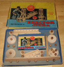 World War II Naval Range Finder Click to Enlarge During and after the war, it was difficult for the Gilbert company to obtain steel. Gilbert produced this Erector Junior No. 5 in 1945. In our detailed discussion of Erector Sets we'll see that Mr. Gilbert was outmaneuvered in seeking steel priorities in the post-WWI economy, leading to the emergence of the "Constructioneer" competing system. The artificial advantage did not last and Gilbert attained prominence in selling Construction Sets during the 1950s.