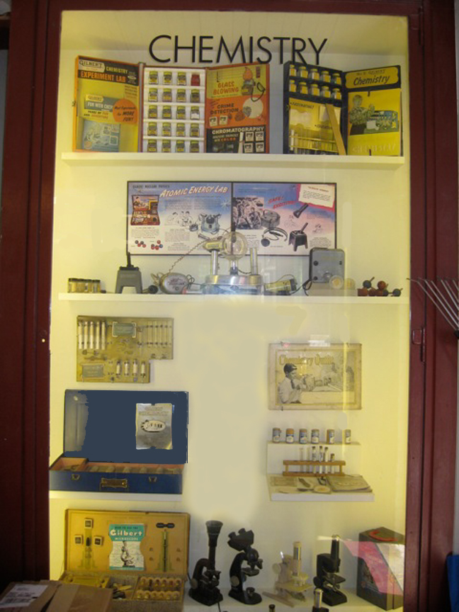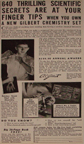 From the 1930 Sears Catalogue The Expensive Set was a "bargain" Click to Enlarge Mr. Gilbert focused in on the Boys need to win approval from Dad, Mom, and Pals with the Freudian zeal. This advertisement for the chemistry set invokes the wonder of modern science but brings it home by saying "... Imagine Dad's surprise when you make a compound that will keep his windshield from fogging in rainy weather. Picture mother's amazement when you make iodine .. Think how your Friends will gasp when you turn a lemon into an electric cell...".