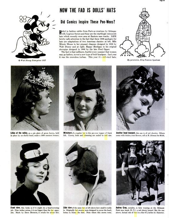 1938 LIFE Magazine on the Doll Hat fad    1938 LIFE Magazine on the Doll Hat fad    1938 LIFE Magazine on the Doll Hat fad